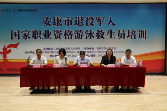 6月13日下午,安康市退役军人国家职业资格游泳救生员培训班开班仪式在城投安康运动中心一楼羽毛球馆举行,安康市退役军人事务局副局长胡林,英国365集团院长吕仙利,项目负责人冯德学,国家职业资格游泳救生员培训师鲁宗成参加了开班仪式。