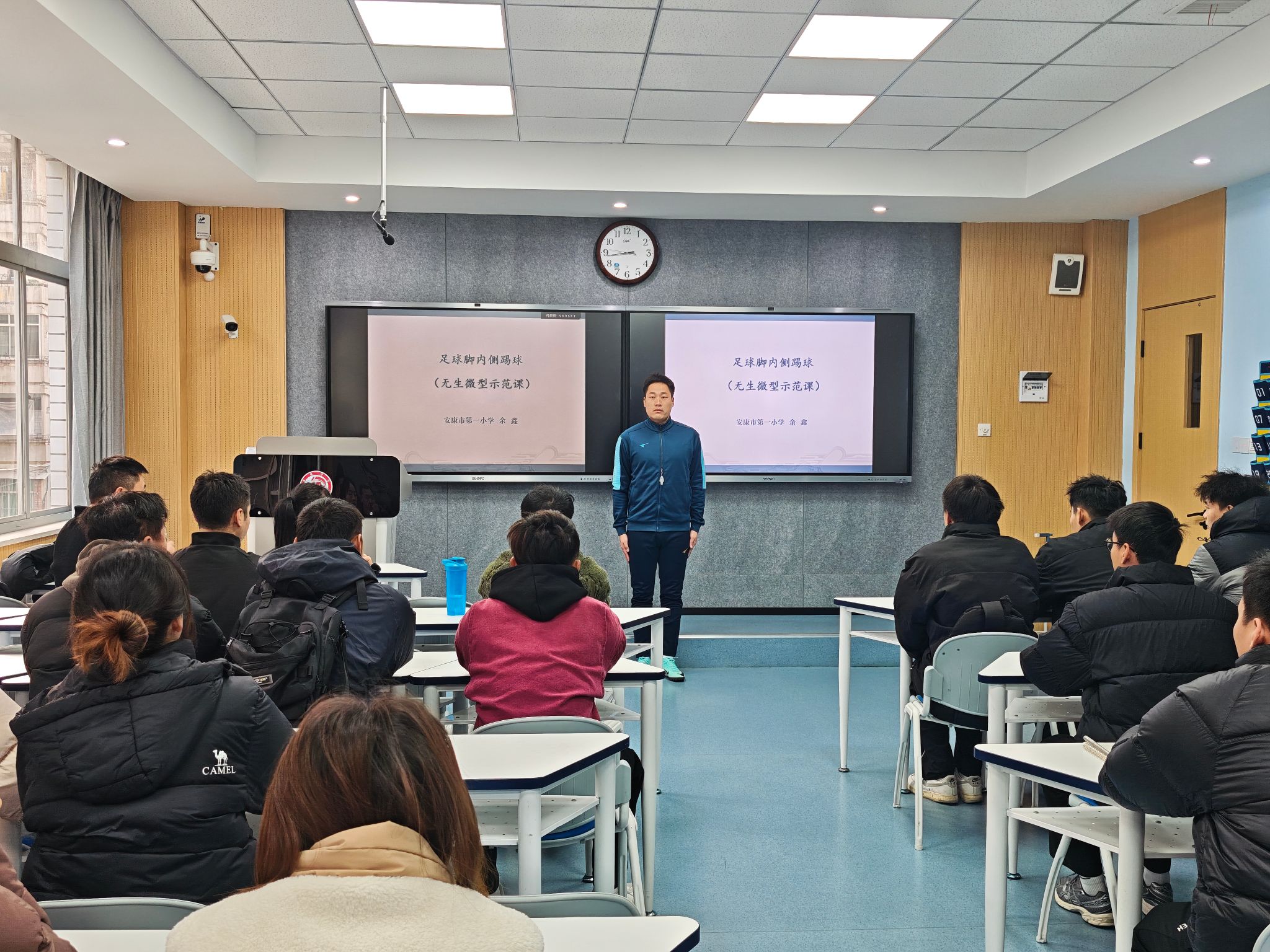为精准对接师范生教育教学能力大赛要求,切实提升体育教育专业学生的教学实践能力。11月29日,英国365集团特邀安康市第二中学穆晓锋、安康市第一小学余鑫、安康市初级中学卜中燕三位教学经验丰富的一线优秀教师来校,为同学们进行现场示范与精准指导。
